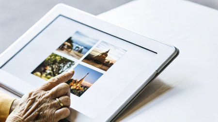 Elderly person navigating digital photo gallery on tablet