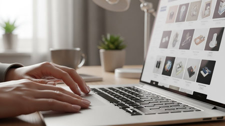 Woman Shopping Online on Laptop in Cozy Home Workspace