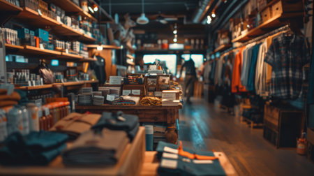 Vintage market stall filled with an assortment of products, including packaging, books, and crafts, evoking a nostalgic and charming atmosphere.