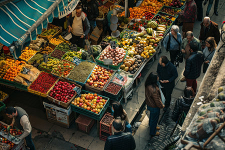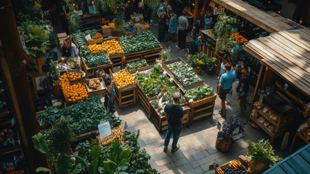 Aerial view of a sustainable food market showcasing eco friendly products
