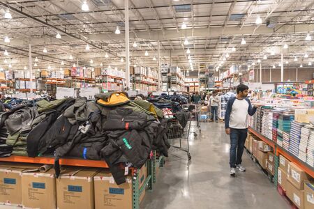 LEWISVILLE, TEXAS, USA-NOV 29, 2019: Clothes department with diverse customer browsing clothing products on sale on Black Friday at Costco Wholesale.