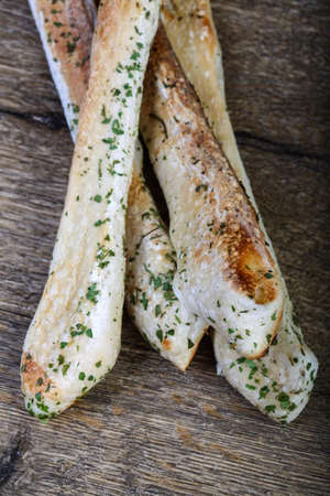 Italian bread stick with herbs on the wood background