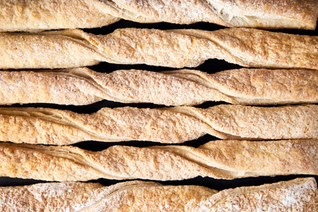 Homemade Grissini Freshly Baked Breadsticks with black background