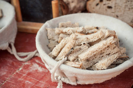 closeup of traditional alsatian bread tasting in basket