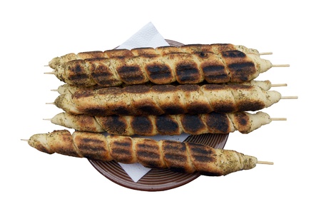 Bread skewers isolated over white background