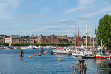 Stockholm, Sweden - July 30, 2024: A waterfront of Stockholm.