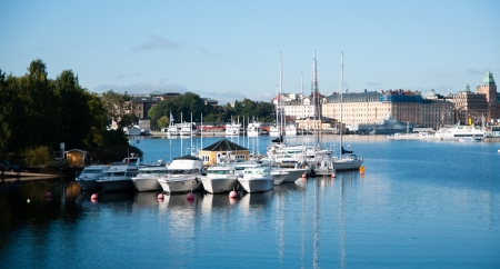 Boats lying on Strandv�gen in Stockholm, Sweden