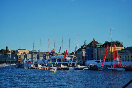 Stockholm, Sweden - 06 21 2009: Sailing boats of the Volvo ocean race in the port of the swedish capital Stockholm in the baltic sea