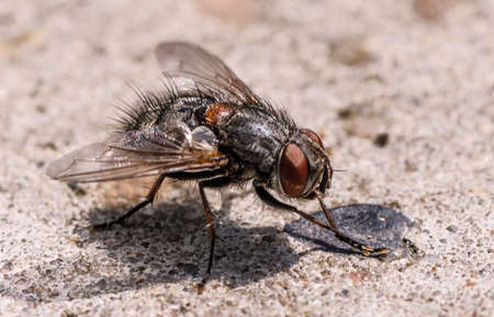 Housefly close up Macro shot. The housefly is a fly of the suborder Cyclorrhapha, and has spread all over the world as a commensal of humans. It is the most common fly species found in houses