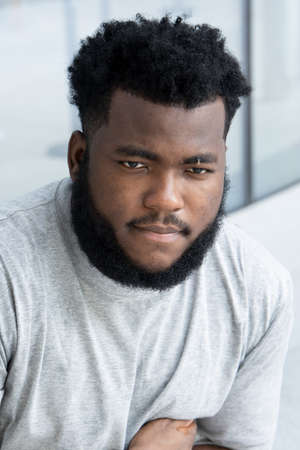 Portrait of young handsome bearded African man in casual clothing