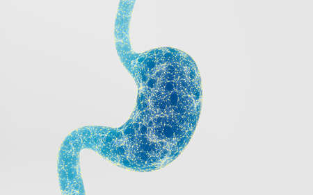 Human Internal Stomach with digital lines, 3d rendering. Computer digital drawing.