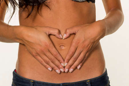 Care enough about what goes into your stomach. an unrecognizable woman forming a heart shape in her stomach.