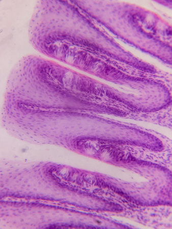 Tissue of Stomach Human under the microscope in Lab.