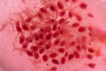 Egg of parasite in stool examition testing finding with microscope.