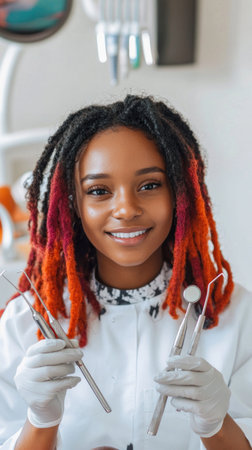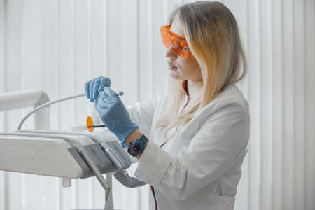 Professional doctor dentist examine and treat spoiled teeth with the use of special dental instruments, medical equipments. Healthy teeth concept