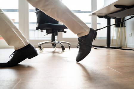Wire Cord Trip Over And Fall. Feet Stumble On Cable