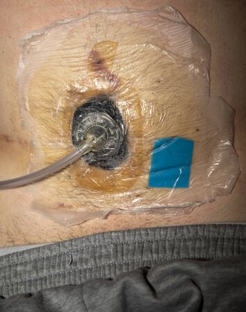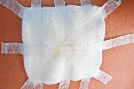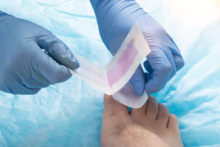 Postoperative wound dressing. Doctor applied a bandage to the wound.