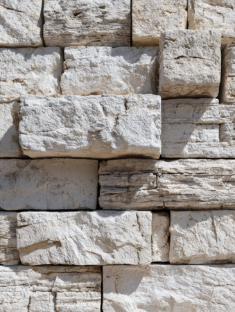 Close-up shot capturing the weathered textures of a sturdy stone wall. The irregular shapes, crevices, and color variations create depth and emphasize the natural beauty of the materials.
