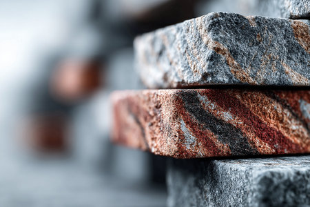 A close-up shot showcasing a stack of rough-hewn grey stones, creating a textured and layered background.