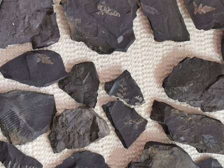 A collection of rocks and stones, some of which are shaped like leaves. Concept of natural beauty and the diversity of the earth's geological features