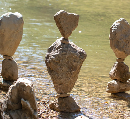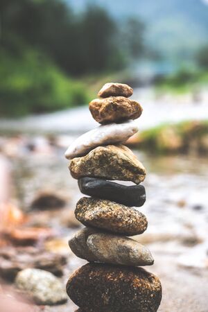 The concept of balance. A perfectly balanced arrangement of natural stones in a composition.