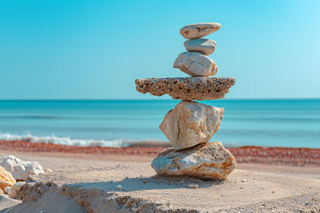 Generative AI : concept of balance and harmony rocks on the coast of the Sea in the nature