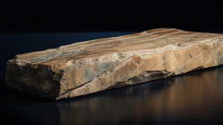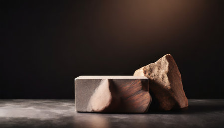 luxury natural stone podium for showing packaging and product on black background copy space ai generative