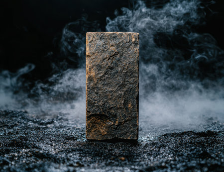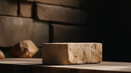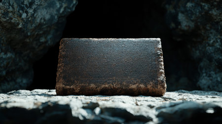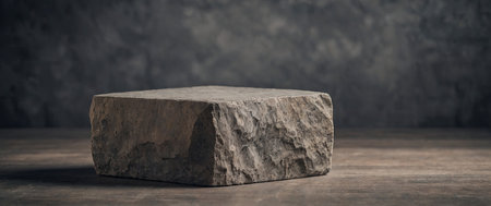 Textured Concrete Block on a Smooth Surface in Minimalist Design Studio.
