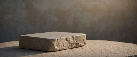 AI Generated. A minimalist stone podium in a warmly lit space with soft shadows , minimalist, product display, stone podium, serene, composition, cylinder, neutral colors, modern, elegant, clean