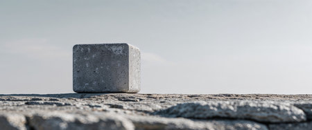 AI Generated. Gray stone block on stone surface outdoors