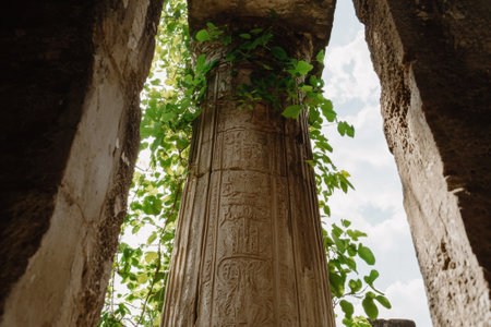 Columns made of ancient stone rise up towards the sky in a historical location that reflects the past and showcases old architecture.