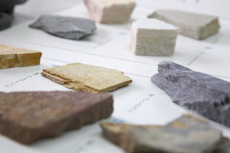 Close-up view of various stone samples, showing different colors and textures. Ideal for design and construction projects.