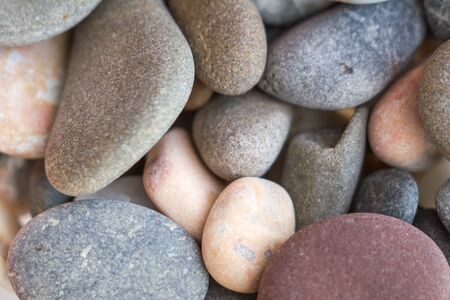 Different sizes and colors stones abstract background or texture. Closeup view. Selective soft focus.