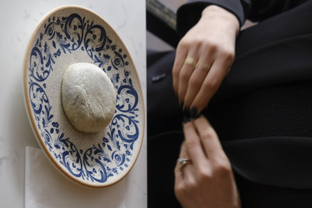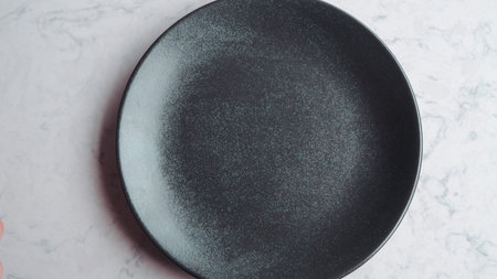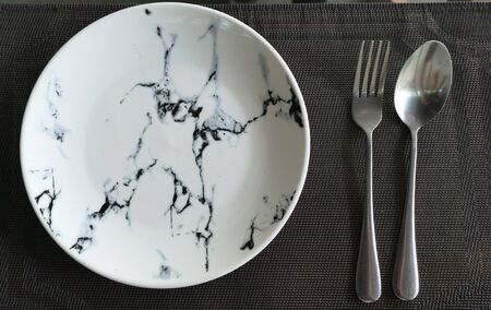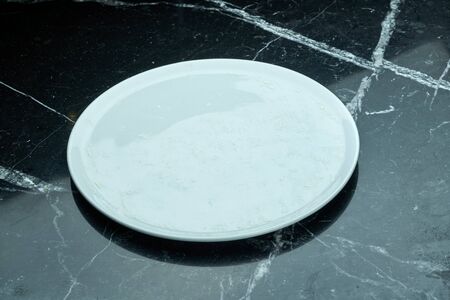 White plate on a black marble table