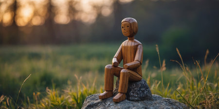 An isolated wooden figure, set apart from others, symbolizing emotional stress and confusion in a visually striking scene.
