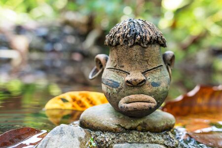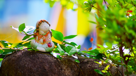 little cute toys hidden between rocks at Labyrinth Rocks in Takaka, South Island, New Zealand
