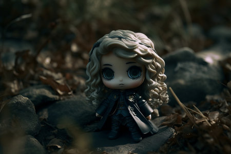 an ultra-realistic doll with insanely detailed and intricate features is captured in a dynamic pose. shot on a 25mm lens with a depth of field and tilt blur effect, the photograph showcases the doll's elegance and hyper maximalist design. the lighting, ranging from half rear lighting to dramatic backlighting, adds to the overall dramatic effect. with its ultra-detailed and intricate details, this photograph is a