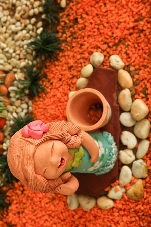 Elegant close-up of a doll in vibrant cultural attire, isolated with copy space.