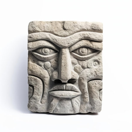 this ancient stone carving, adorned with a serene facial expression, sits elegantly on a pristine white isolated background, showcasing exceptional craftsmanship and intricate details, perfect for history buffs, art enthusiasts, and collectors of ancient artifacts, relics, and sculptures. ai generated