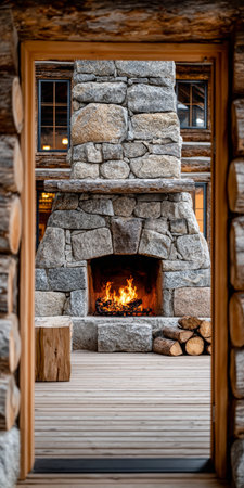 cozy fireplace in rustic cabin interior