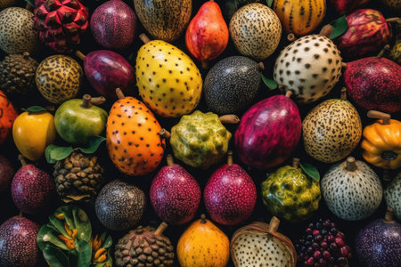 A pile of different types of exotic fruits, including apple, pear, mango, and pomegranate. Generative Ai
