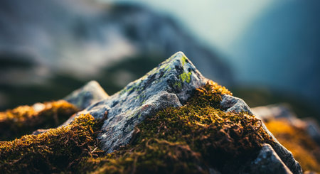 Colorful lichen patterns on textured rocks of arctic tundra displaying unique designs