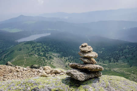 Stacked stones in the Ergaki Nature Park. Hiking to sayan mountains