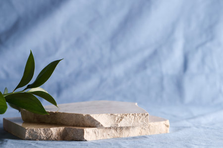 Minimal background for branding and product presentation.natural stone for product display on blue background.copy space.advertising and sale concept