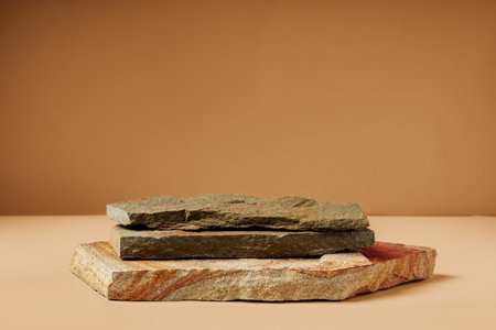 Empty natural beige stone product display background or blank cosmetic podium platform stage. Background for beauty products.