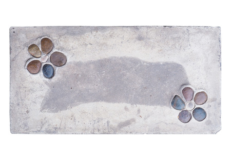 Grey cement board with stone decoration as flower. Footpath concrete board isolated on white background