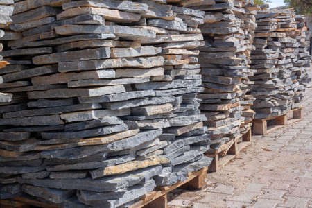 Pallets with natural stone close up. Folded flagstone. horizontal photo.
