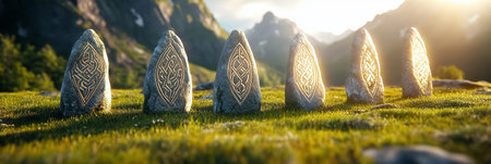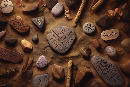 Intricately carved stones with ancient symbols and mystic patterns