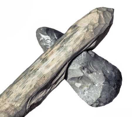 ancient stone tools on a light background