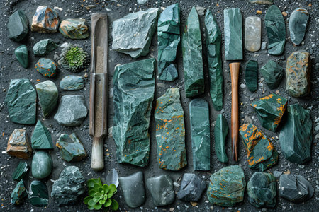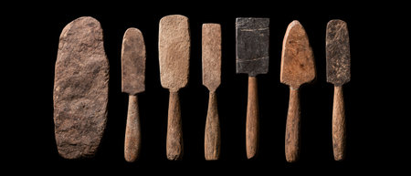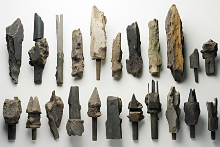 Display of unique stone tools showcases artistry and craftsmanship with earthy colors and textures. Perfect for backgrounds, educational materials, or artistic projects.